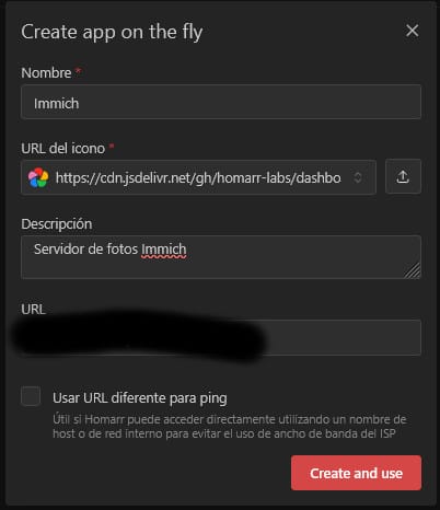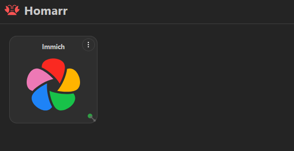 En mi caso, voy a crear una aplicación para mi servidor de imágenes Immich, la cual se mostrará en el propio panel de la siguiente forma.